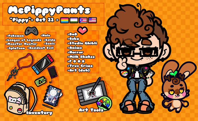 My name is Pippy and I'm a freelance furry and multi-fandom artist just trying to get through life one doodle at a time!I've been drawing since I could hold a pencil and have been in the commission scene for about 8 years now!During Covid I took the plunge into merch work and it's now been a huge new hobby of mine and I'm hoping to one day make it my full time gig as a vendor at conventions !